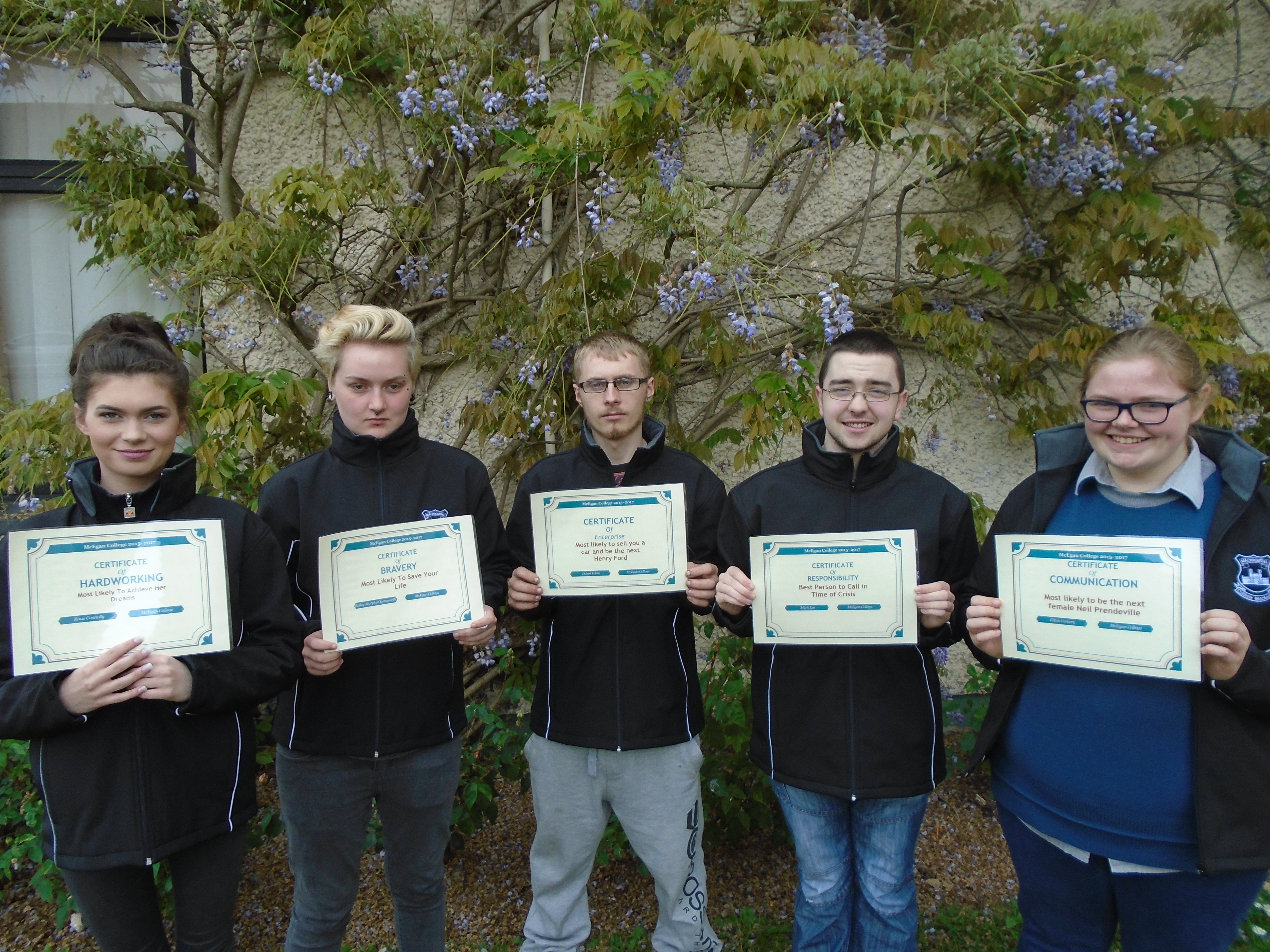 Some of the LCA 2015-2017 class with their certificates to mark the end of their two years at the school. You can see by their faces some are happier than others to be leaving!!